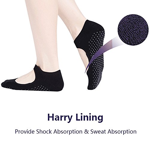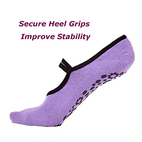 -. Feature : ★Combined up to 95% premium quality combed cotton and 5% spandex, these pilates socks perform well on absorb sweat, keep feet dry and help protect feet against exposure from unwanted dirt and germs / ★With the sexy ballet slipper straps on the top, they hold the sock on place well, don't slide around or off on your feet, they're soft, breathable, comfy and hold up during fitness training / ★Non skid grips on the bottom offer better grip for improved stability & balance, they prevent you from skidding on wood studio floors / ★Stretchable fits women shoe sizes 5-10. Machine wash inside out in cold water. Line dry or machine dry on low heat. Avoid bleach or iron. 100% ensure there is no shrinking deformation, or fade / ★100% SATISFACTION GUARANTEE!- We stand by the quality of our product and guarantee you will love our YOGA socks. If you are not 100% satisfied with the purchase, you may return it to us within 90 days and receive a full refund or replacement.
