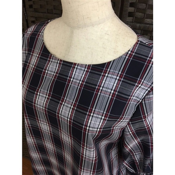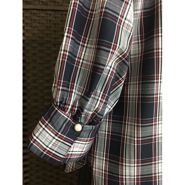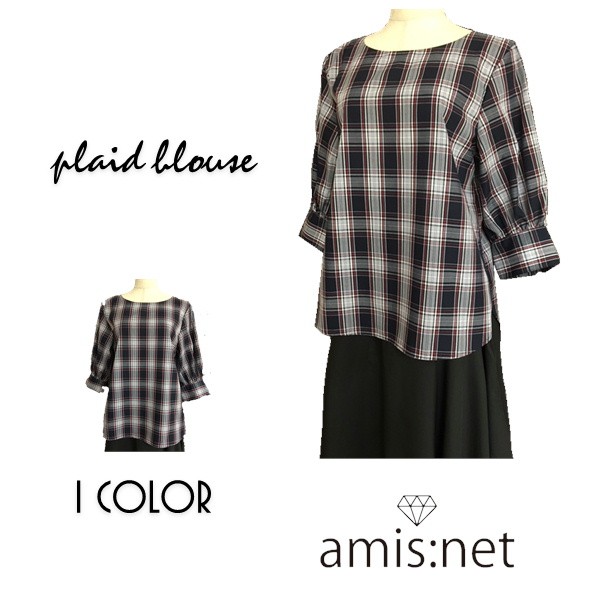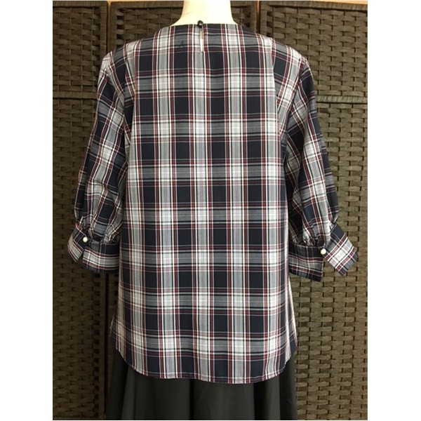 商品名 七分袖 袖口パール付きチェック柄ブラウス