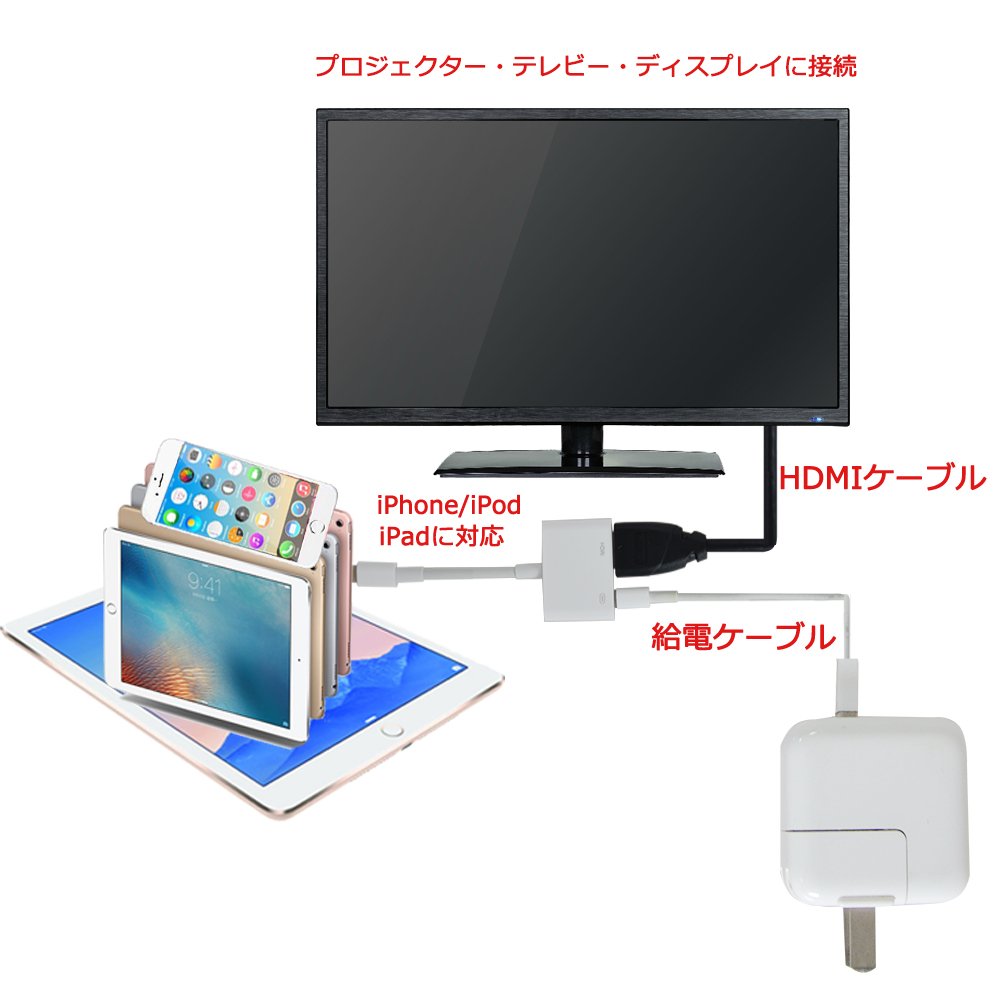 With the Lightning Digital AV Adapter, you can view everything you see on the screen of your device, such as applications, presentations, websites, slideshows, on an HDMI-equipped TV, display, projector, or other compatible display