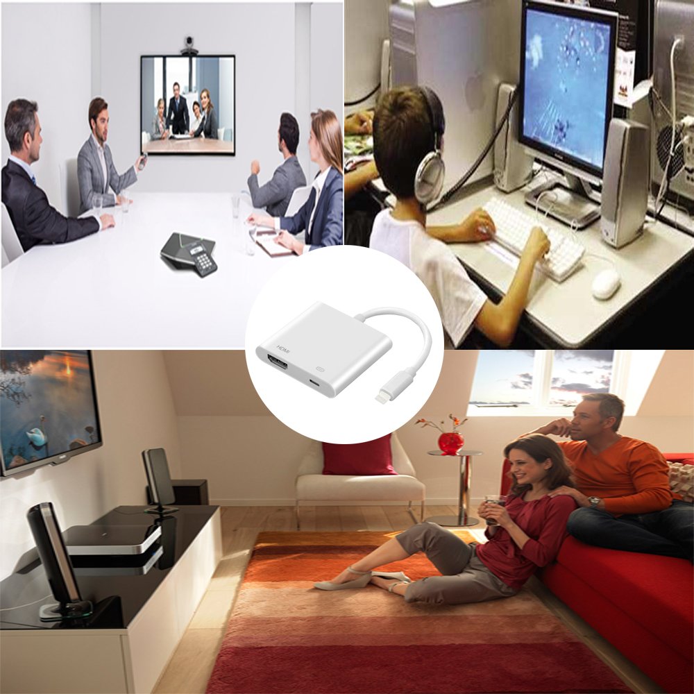 Our Lightning Digital AV adapter allows you to share videos on YouTube together, share photos on the internet and pictures taken with your mobile phone on a big screen.