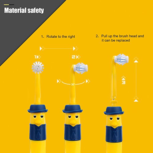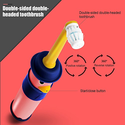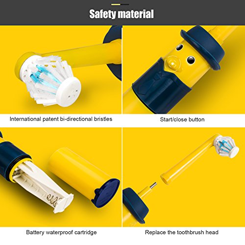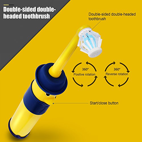 Electric Toothbrush, AFISH Children Cartoon Electric Toothbrush With Bidirectional Brush Head 360 Degree Rotation Waterproof For Kids Access to international patents (3-6 years old, yellow)