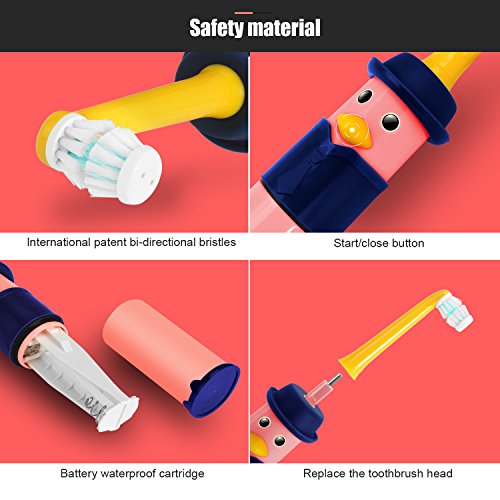 Electric Toothbrush, AFISH Children Cartoon Electric Toothbrush With Bidirectional Brush Head 360 Degree Rotation Waterproof For Kids (7-14 years old, pink)