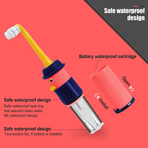 Electric Toothbrush, AFISH Children Cartoon Electric Toothbrush With Bidirectional Brush Head 360 Degree Rotation Waterproof For Kids Access to international patents (3-6 years old, pink)