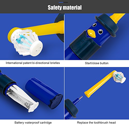Electric Toothbrush, AFISH Children Cartoon Electric Toothbrush With Bidirectional Brush Head 360 Degree Rotation Waterproof For Kids (7-14 years old, blue)