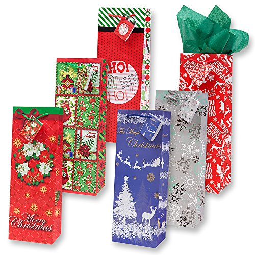 Product Description These attractive bags come in assorted colors and designs. They feature a nice quality sturdy paper bag with rope handles. Great for gift giving! Makes wrapping wine bottles quick and easy. Perfect for all your Christmas gifts! 0