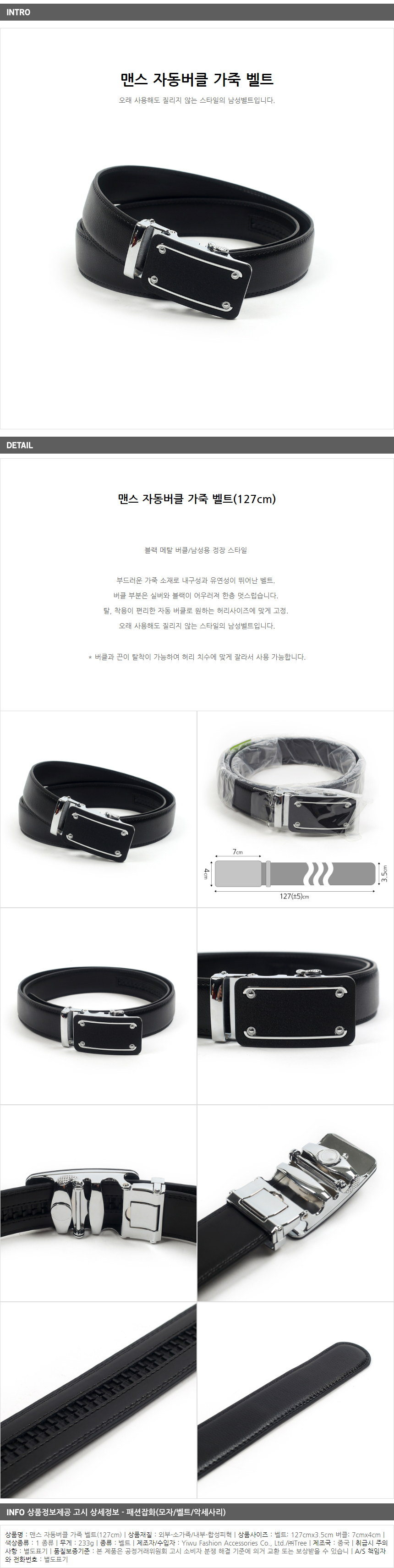 <상품명 : ZP8 맨스 자동버클 가죽 벨트(127cm)>