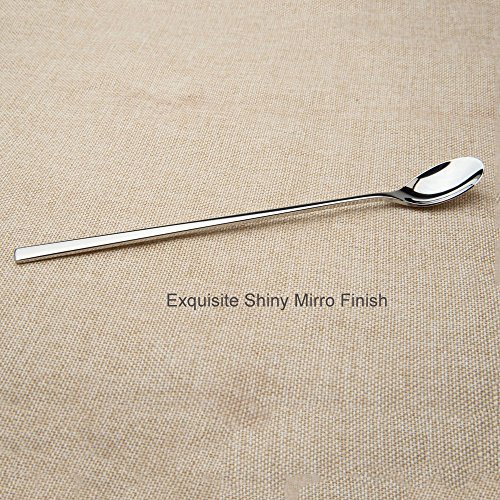 IMEEA 8.8-Inch Long Handle Stirring Spoon Iced Tea Spoon, Coffee Spoon, Ice Cream Spoon, 18/10 Stainless Steel Cocktail Mixing Spoons, Set of 6