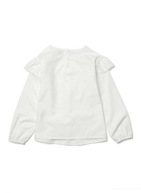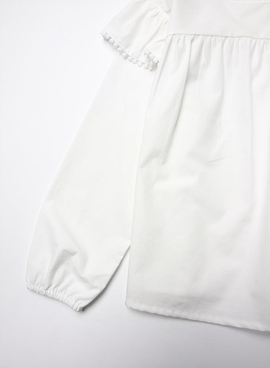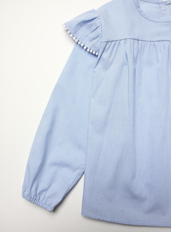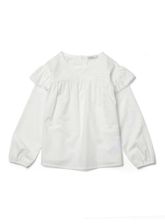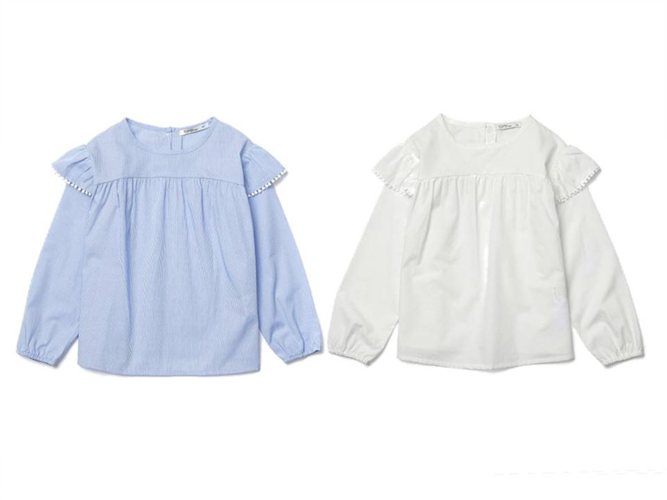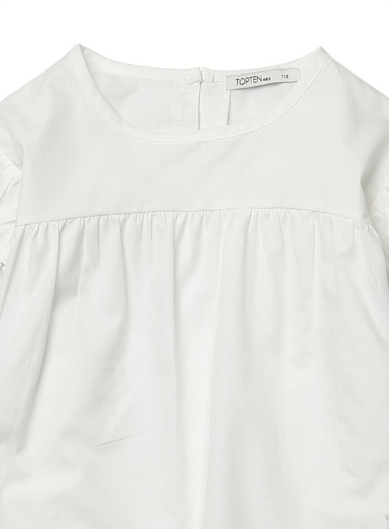 단색의 깔끔한 프릴 블라우스로 청바지나 치마에 코디하면 이쁩니다.