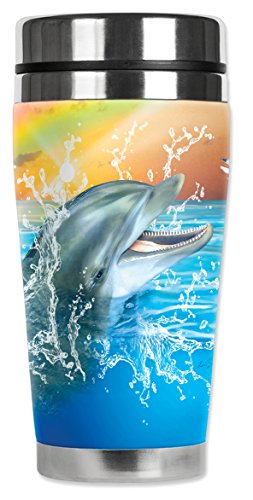 Mugzie 720-MAX "Dolphin" Stainless Steel Travel Mug with Insulated Wetsuit Cover, 20 oz, Black
