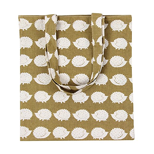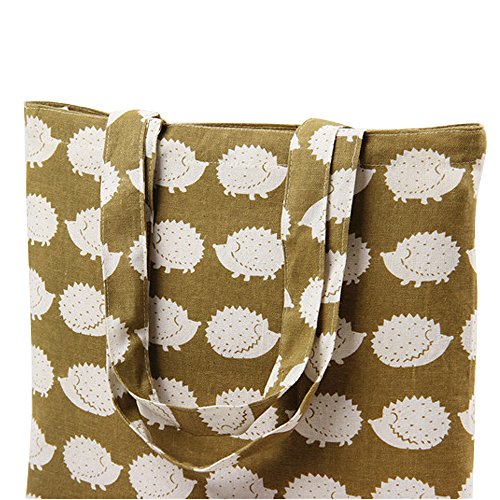 Nuni Women's Cute Hedgehog Print Canvas Tote Bag Olive