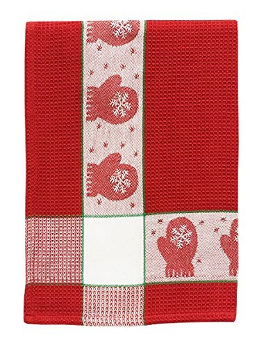 100% Cotton Red & White 20"x28" Dish Towel, Set of 6 - Mittens Ruby