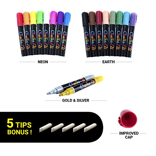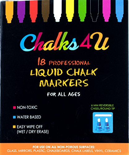 Chalks4u - The Best Quality 18 Liquid Chalk Markers you have Ever Experienced. Premium Product for Smart Parents and Kids. Excellent for Artist as for Amateur. Include Gold, Silver and 8 Neon Colors.