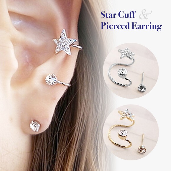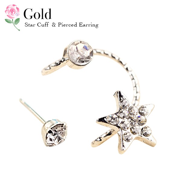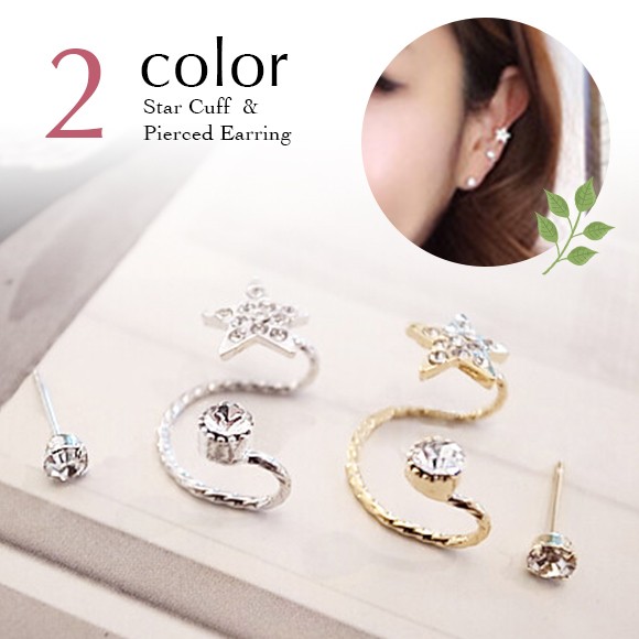 キラッと光るスターモチーフのイヤーカフと、ピアスの2点セット♪