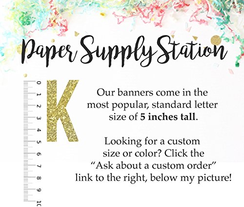 Product Description *Handmade in the USA by a small Minnesota based family business *Letters are each 5" tall and roughly 2.5" wide *Letters are adjustable along white string *Glitter card stock is professional quality, 300gsm weight *Duo-toned glitter for maximum sparkle *Backed with sturdy white card stock 0