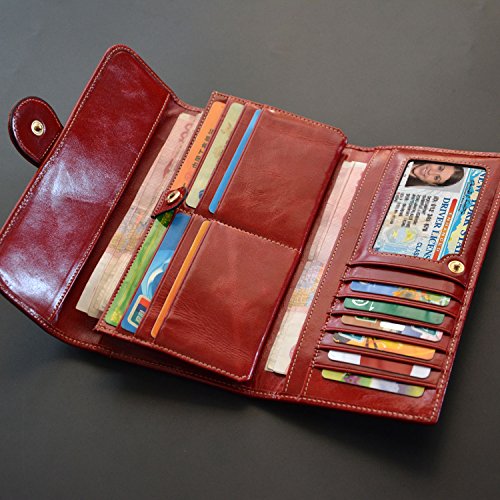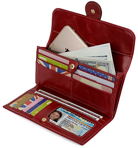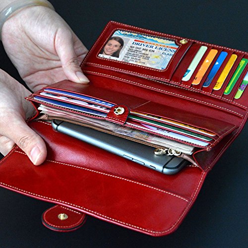 [WELL ORGANIZED] - 12 Card holders; 3 bill sections; 1 zipped pocket; 1 ID Window. Clear layout and well organization for quick access. This wallet will hold up 20 pieces of US dollars and iPhone 7 Plus fits in the meantime. And the snap stays shut!