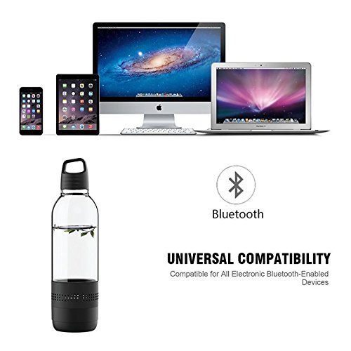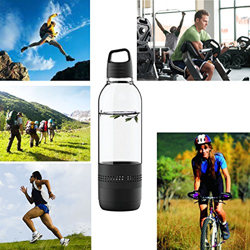 ♫ THE PERFECT COMBINATION OF WATER AND MUSIC:Interesting creative combination make life healthier and more beautiful.Simple design but very useful.Portable bottle speaker you can take it anywhere.Music and outdoor sports cup combo will not need to carry the heavy glass and speakers, one better than two portable utility.
