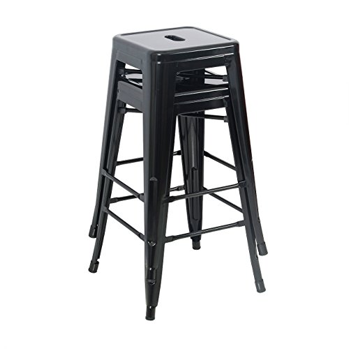 -. Feature : Sturdy, Four-Legged Design / A Perfect touch of Vintage Industrial Modern Look to your Kitchen Island or breakfast counter, Play Room, Patio, restaurant. / Black Powder Coat Finish / Stackable Industrial Style Modern Stool / Seat Height: 30" Seat Size: 12" x 12" Stool Dimension: 17"(W) x 17"(L) x 30"(H)
