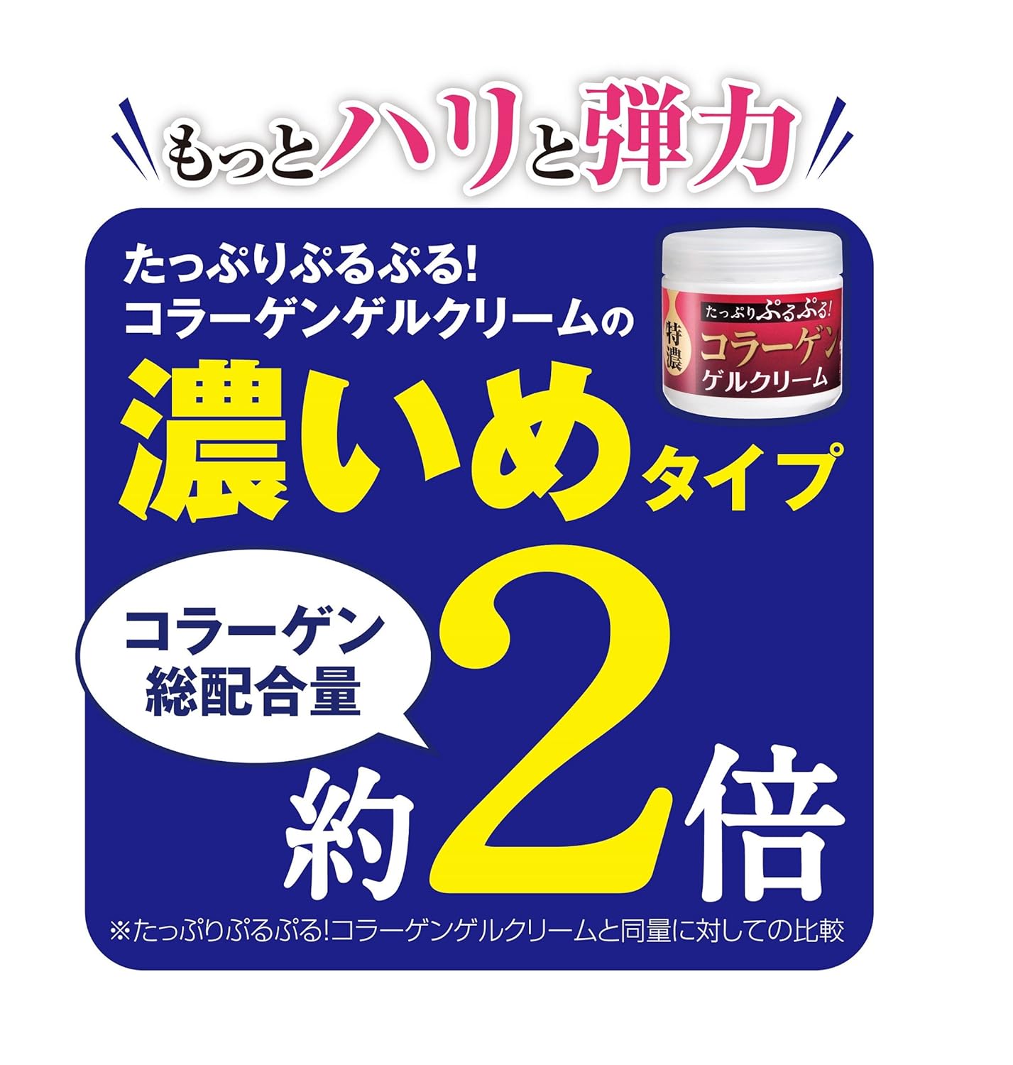 たっぷりコラーゲンシリーズ人気No.1。コラーゲンを10種類に増やしてリニューアル新登場! 9種類のコラーゲンはそのまま約2倍配合!(たっぷりぷるぷる!コラーゲンゲルクリームと比較)配合したオールインワンゲルクリーム。お肌のすみずみまでうるおし、ハリと弾力のあるお肌へと導きます。2016年8月〜2018年3月でメーカー出荷総数25万個*突破! *メーカー調べ。