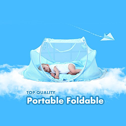 KidsTime Baby Travel Bed,Baby Bed Portable Folding Baby Crib Mosquito Net Portable Baby Cots Newborn Foldable Crib(BLUE)