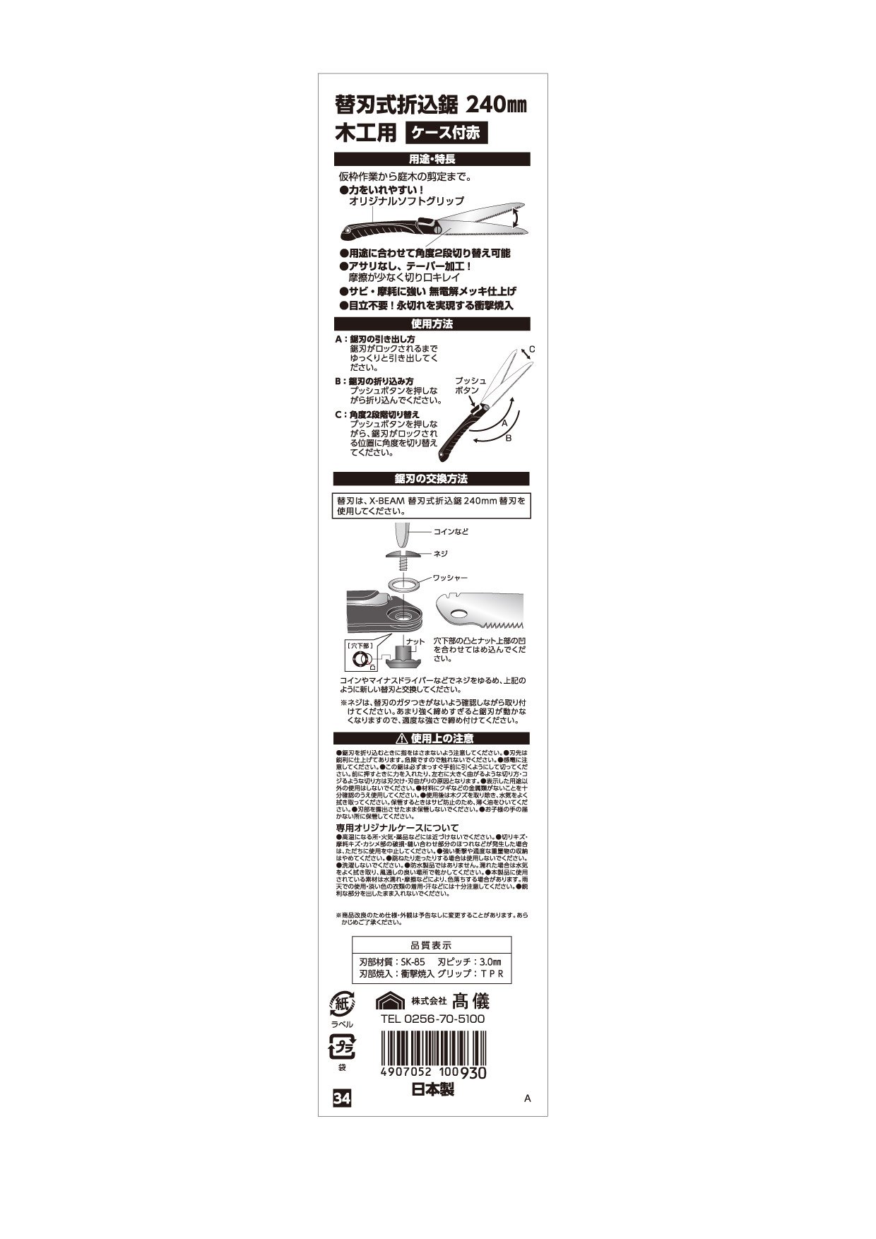 ● Asarinashi, tapering with less friction and cutting edge