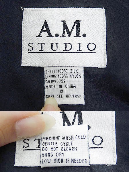 Ladies ブランド- カラー黒 メール便不可 コンディション★★★ 素材表地シルク・裏地ナイロン 表記サイズ1X スタッフコメント比翼メンズ合わせ。エクストリームシルエットな着こなしに◎。男性の方にもおすすめです。素材全体数か所に糸引きがあります。肩パット入り。 実寸サイズ 着丈 67 cm 身幅 71 cm 肩幅 57 cm 袖丈 55.5 cm ※ウエスト・ヒップ以外は平置き採寸