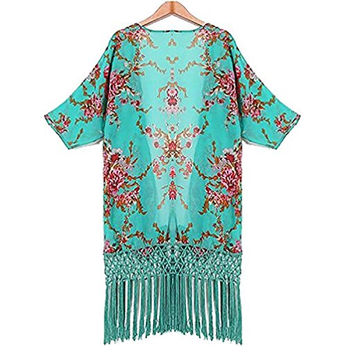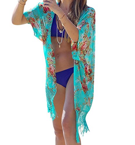 Summer Tassel Kimono Swimwear Cover Up Floral Print Cardigan Beachwear JA13