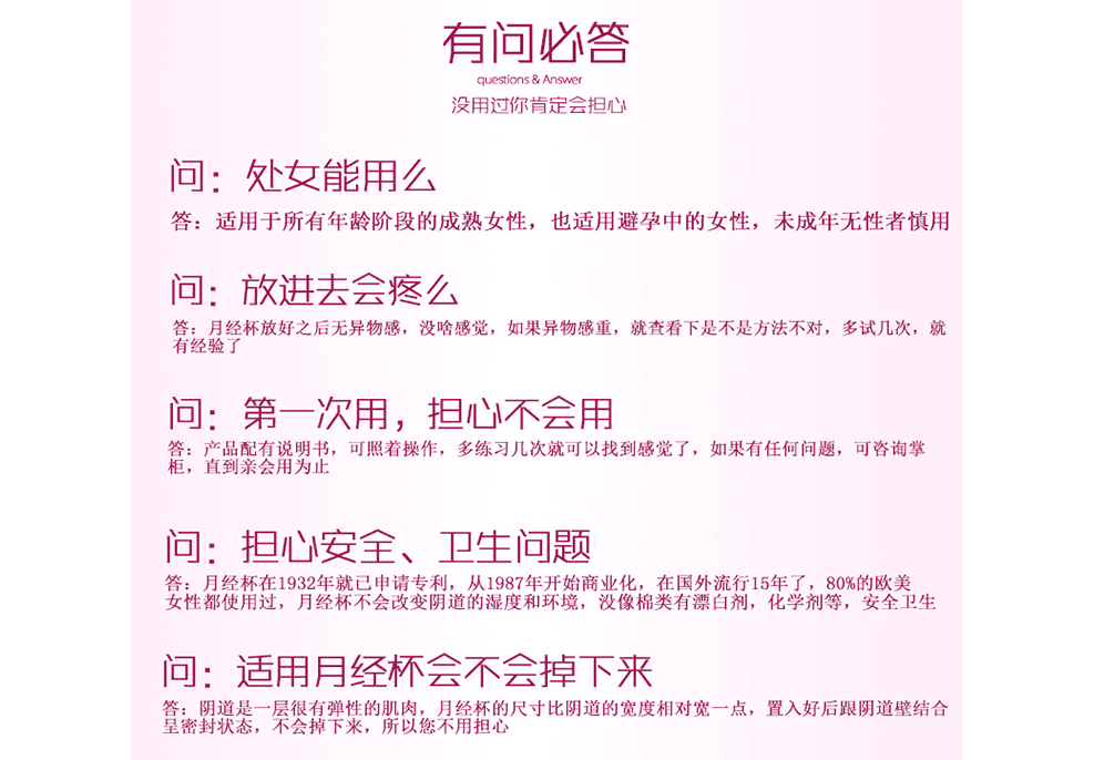 You do not feel it when you wear a Luna Cup menstruation cup! You never know you can feel so free during your menstruation period until you try a Luna Cup menstruation cup! Tampons are absorbing, they not only absorb menstrual blood, but also the natural vaginal fluids that keep you healthy and moist, and the string usually gets wet when you pee! Disposable feminine pads are like a constant reminder that you are in an inconvenient time of the month!