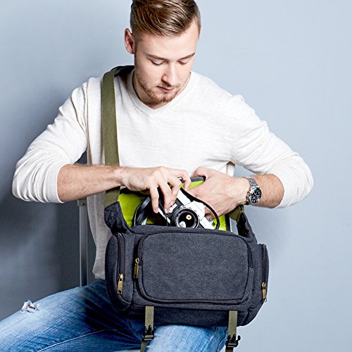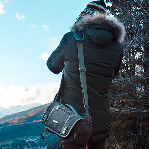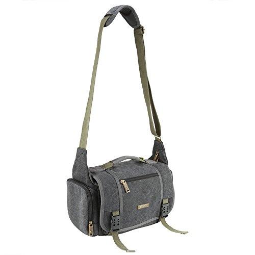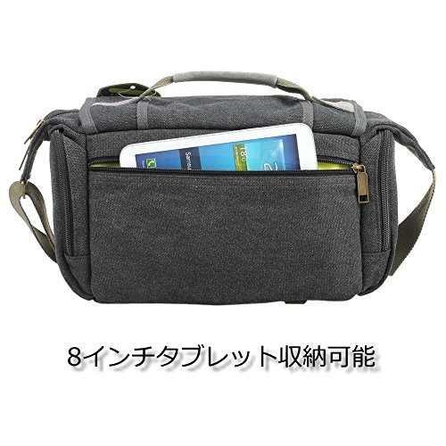 -. Title : Evecase 一眼レフカメラバッグ 肩掛け/手提げ 仕切パッドが調整可能 キャンバス カメラショルダーバッグ グレー