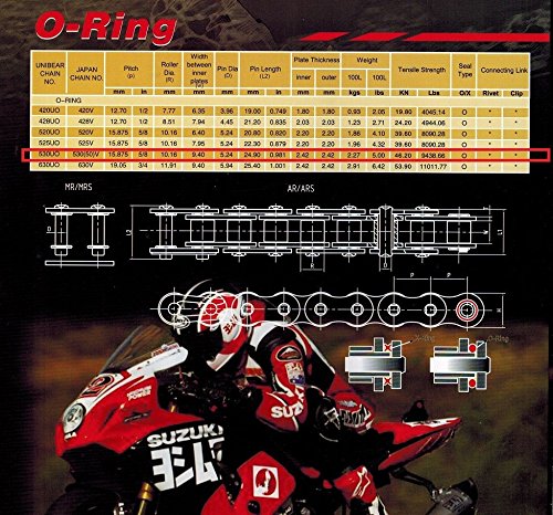 Unibear O-Ring 530 130 Links Motorcycle Chain,GOLD, With 1 Connecting Link, Japan Technology