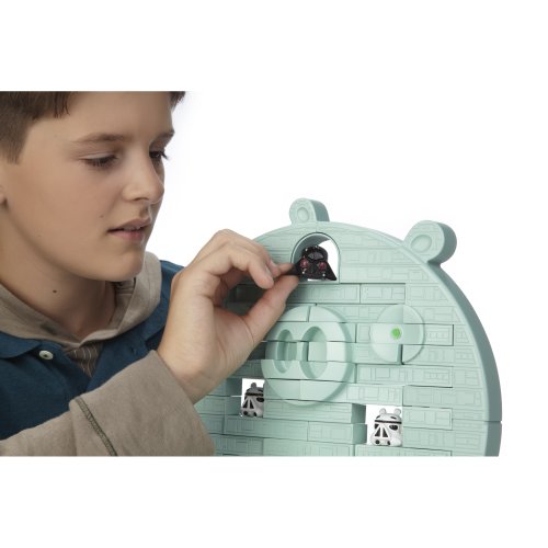 Special code inside to unlock ANGRY BIRDS STAR WARS mobile content online. | Destroy the DEATH STAR! That’s no moon…it’s the ultimate threat to the rebel birds. Let the epic STAR WARS battle begin! DARTH VADER and his menacing STORMTROOPERS are ready for an intergalactic battle, ANGRY BIRDS style. Take turns trying to topple the Empire! Pull back the X-WING FIGHTER launcher to launch an epic squawk attack with the LUKE SKYWALKER, HAN SOLO and CHEWBACCA birds. How many hits will it take the heroes to knock out the JENGA blocks and destroy the DEATH STAR? Roll, launch, and win! Based on the hugely popular mobile app, now STAR WARS meets ANGRY BIRDS in this JENGA DEATH STAR game! Roll the die, grab the X-WING FIGHTER slingshot and then get into galactic action as you launch the LUKE SKYWALKER, HAN SOLO and CHEWBACCA ANGRY BIRDS characters in a battle against the STORMTROOPER and DARTH VADER pigs. How many tries will it take you to knock out the pigs or win big by breaking the JENGA DEATH STAR into pieces? Stack it up, then knock it down! See the DEATH STAR take shape as you stack all of the JENGA blocks inside. Then place the DARTH VADER pig and his STORMTROOPER pigs at their posts and you’re ready to let the Rebel birds fly! Game includes special code to unlock ANGRY BIRDS STAR WARS app content. What's In The Box? DEATH STAR Frame, LUKE SKYWALKER Bird, HAN SOLO Bird, CHEWBACCA Bird, DARTH VADER Pig, 4 STORMTROOPER Pigs, X-WING FIGHTER Launcher, 31 Plastic JENGA Blocks, 1 Lock Block, Die, Base, Label Sheet, Game Guide/Setup Card