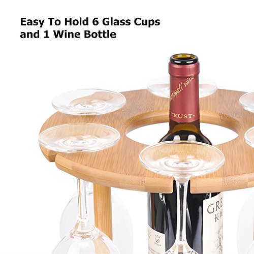 - PERFECT WINE BOTTLE AND GLASS RACK- This elegant, space-saving rack holder can hold 1 wine bottle and 6 stem wine glass cups. Looks great in your kitchen ‘s countertopm, great for displaying and serving bottle and glass for your guests.
