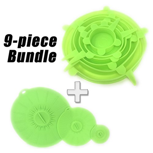 Silicone Stretch Lids & Suction Lids Reusable Food Covers for Cooking and Food Storage Multi-Pack by Cucinare Kitchen- 9 Piece Set