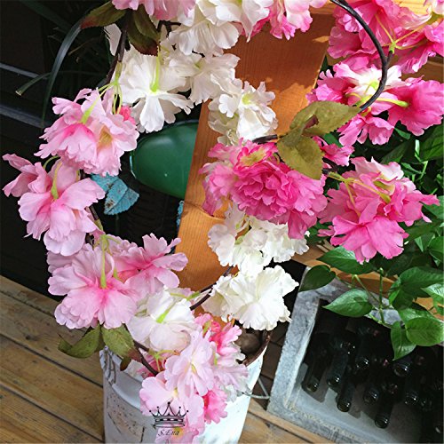 *BEAUTIFUL & ELEGANT: S. Ena Artificial Silk Fake Vine Cherry Blossom with 105 flowers, each flower measured approx. 2.75'' in diameter, total length is 1.75m/5.74ft.