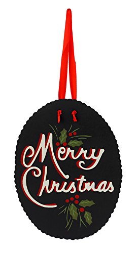 - Features a hand-painted chalkboard style oval sign that says: "Merry Christmas" with a holly berry design