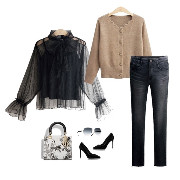 | 素材 | ブラウスーポリエステル100% インナーコットン100% (伸縮性:若干あり/透け感:あり/裏地:なし) |