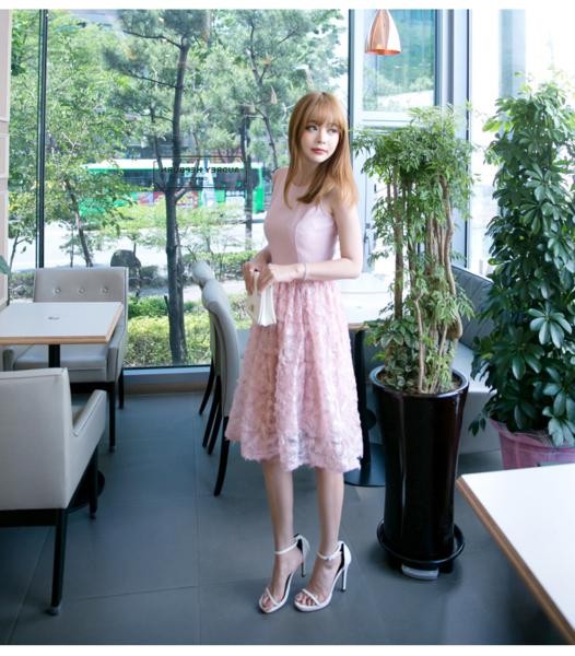 レース/ノースリー/膝丈/ワンピ/Aライン