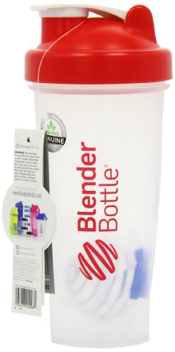 First generation version of the BlenderBottle Classic includes a wire whisk that moves freely inside the bottle to mix ingredients. Features a secure screw-on lid, a wide mouth for easy mixing, and embossed markings that measure both ounces and milliliters. The BlenderBottle Classic is dishwasher safe, BPA- and phthalate-free, and comes in two sizes: 20-Ounce (note: measurements only go to 12 ounces), and 28-Ounce (note: measurements only go to 20 ounces).Feature