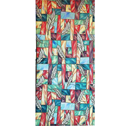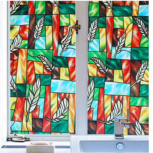 JET-BOND JJ21 Static Electricity Cling Stained Glass Window Film Suncreen Stikcers (no adhesive)UV-Block Privacy Vinyl Film Multicolored Printing Reuseable Removeable 39" x 17.7" (feather)