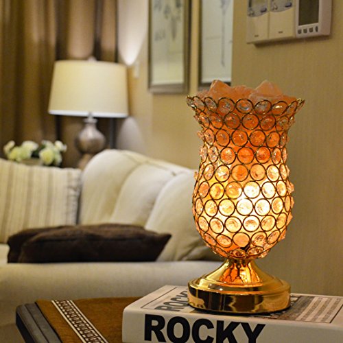 1.Maymii•Home Unique Large Silver Metal Vase Design Crystal Table Desk Lamp Lamps Light With Himalayan Salt Chunks For Bedroom, Living Room Kitchen Nightlight Lights - Dimmable switch and Bulb Include.