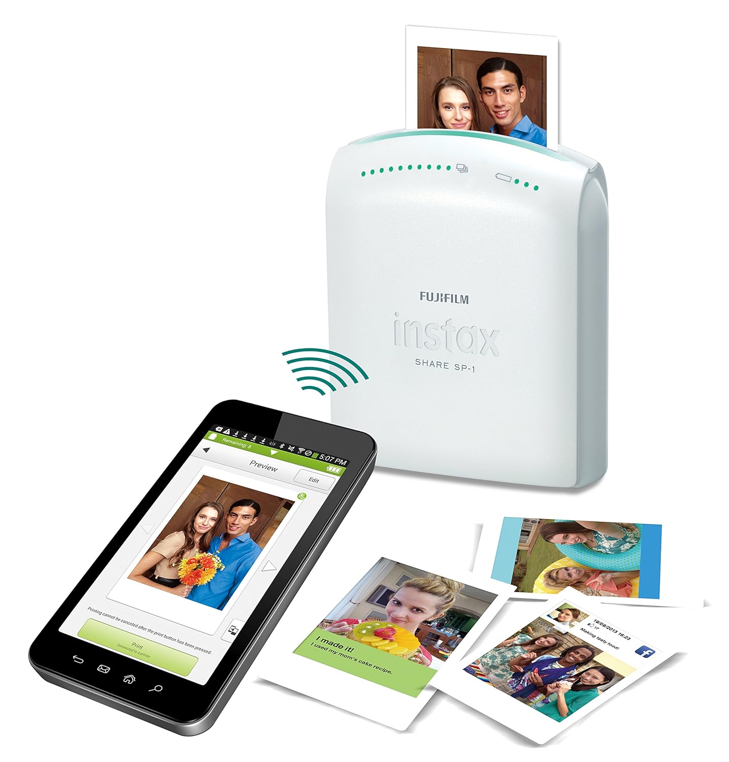 The New INSTAX SHARE SP-1 Printer lets customers print mobile photos instantly from their smart phone or tablet, anywhere, anytime. The INSTAX SHARE SP-1 acts as its own Wi-Fi hotspot, and works with both is and Android to get you instant film prints from any picture stored on your device. Using the INSTAX SHARE SP-1 is fun and easy. With the user-friendly INSTAX Share App available on both is and Android, it’s a snap to print pictures with just a couple of taps on your device. There is also a wide range of unique editing functions and templates to let users get creative with their smartphone images and INSTAX mini film. The INSTAX SHARE SP-1 can also print “real time” information on the film prints, including date and time, location and weather conditions. The INSTAX SHARE SP-1 is compact and stylish, and it has two green LED indicators - one that shows remaining film and one that displays battery status. The INSTAX SHARE SP-1 uses widely-availableINSTAX mini film that is ISO 800 speed, and produces sharp, clear images with vivid color and natural skin tones in a print that is 2" x 3" - perfect for parties, events and creative projects.