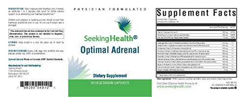-. Feature : IMPORTANT: Optimal Adrenal is manufactured for and sold exclusively by Seeking Health. We DO NOT recommend purchasing this product from any supplier other than Seeking Health on Amazon.com. / Optimal Adrenal by Seeking Health provides pure nutrients for optimal adrenal support. / Constant stress can deplete the adrenal glands and disrupt energy and nervous system function making nutrient supplementation necessary for optimal health.* / Does not contain: Milk, eggs, fish, shellfish, tree nuts, peanuts, wheat, soy, GMO, or preservatives. / Physician formulated.