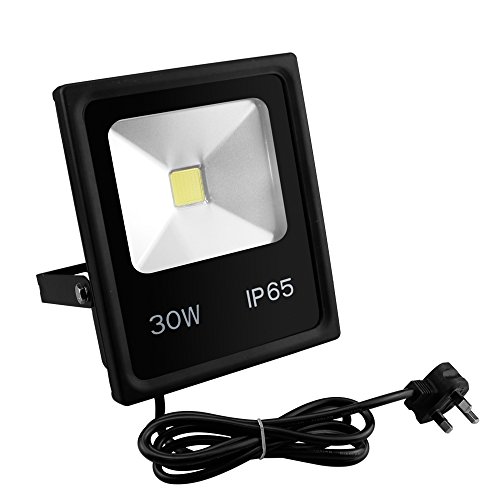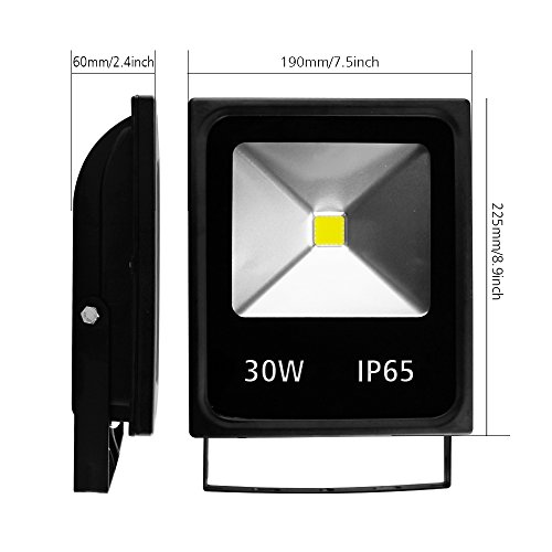 Pacaly Super Bright Outdoor Led 30 Watts 220 Volts Flood Lights with Standard US Power Plug, 100w HPS Bulb Equivalent, Waterproof, 3000lm, 6000k (Daylight White)