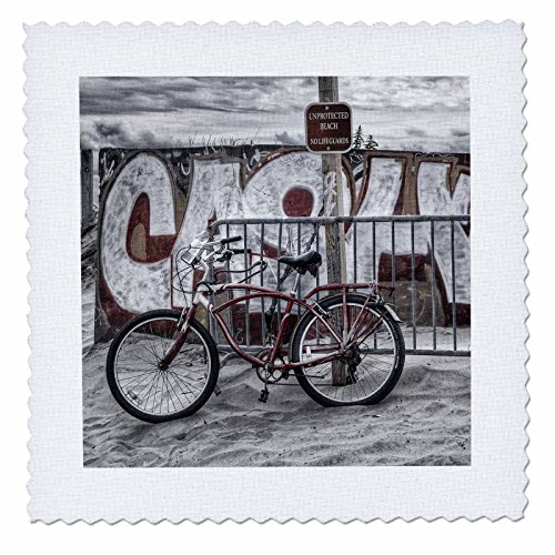 3dRose qs_98405_1 Red Bicycle on The Sand at The Beach-Quilt Square, 10 by 10-Inch
