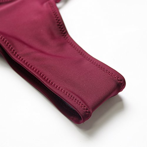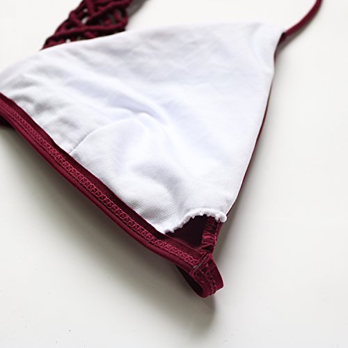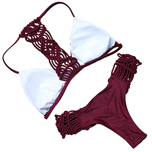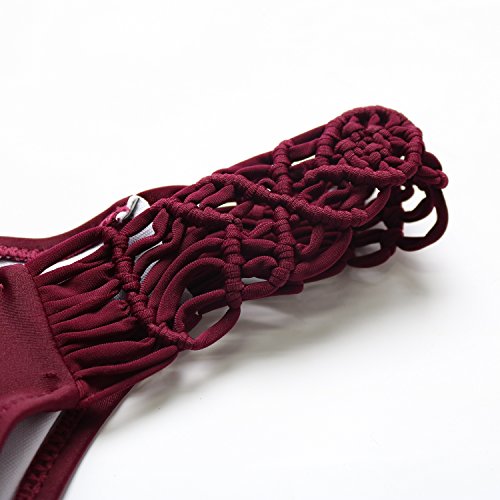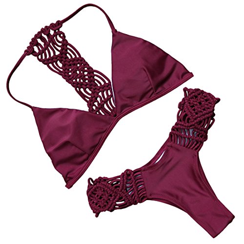 Title : MOOSKINI Women Hand-knit Rope Bikini Maroon Color Padded Swimsuit Bikini Set (M(US Size 4-6), B922)
