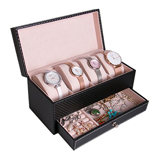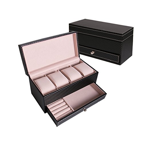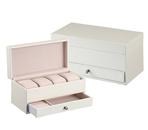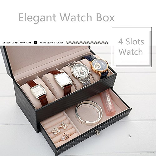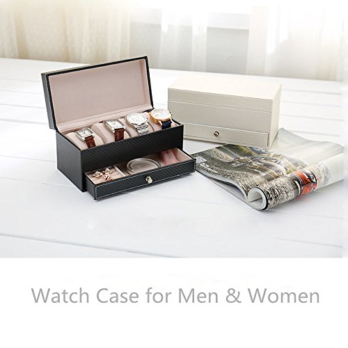 -. Title : Pasutewel Watch Case for Men & Women,Luxury PU Leather 4 Slots Watch Jewelry Storage Organizer Display Box With 1 Jewelry Tray - Exquisite and Durable