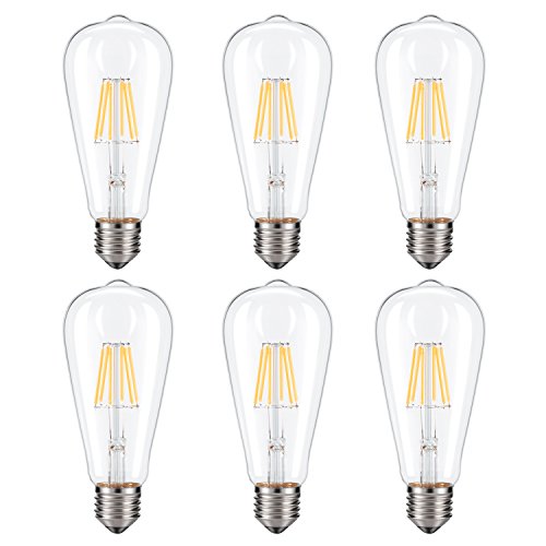 Dimmable Edison LED Bulb, Kohree 6W Vintage LED Filament Light Bulb, 2700K Soft White, 60W Incandescent Equivalent, E26 Medium Base Lamp for Restaurant,Home,Reading Room,Office, Pack of 6