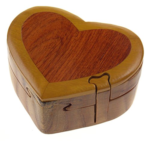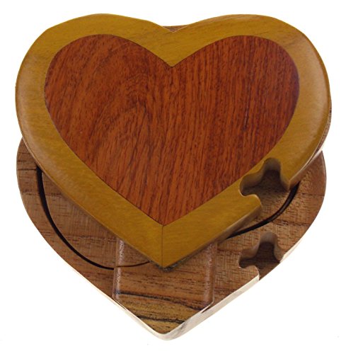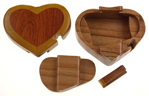 Studio : Hickoryville Publisher : Hickoryville Binding : Kitchen Product Description Handmade carved Heart intarsia wood puzzle box bundled with Hickoryville instructions on opening and closing the puzzle box. This secret puzzle box is a beautifully handcrafted creation, high quality workmanship, made of natural wood. The box is a puzzle that comes apart into four pieces and discovers a secret space to keep special treasures. Inside storage space is approximately 2.3 inches x 2.8 inches. Every box is a unique, handcrafted creation and yours may vary slightly from the photos. 0