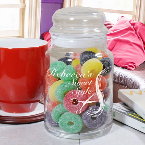 Studio : GiftsForYouNow Publisher : GiftsForYouNow Product Description Provide your clients with sweets and little goodies with your own personalized treat jar. This creative, custom jar also makes a wonderful, personalized gift for your favorite Hair Salon Stylist as a thoughtful thank you gift.?Your engraved Hair Stylist candy jar measures 5.5" h x 4" w and holds 26 oz. Each glass jar comes with an air-tight glass lid. Contents displayed in glass jar not included. 0