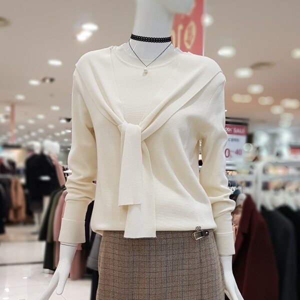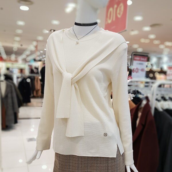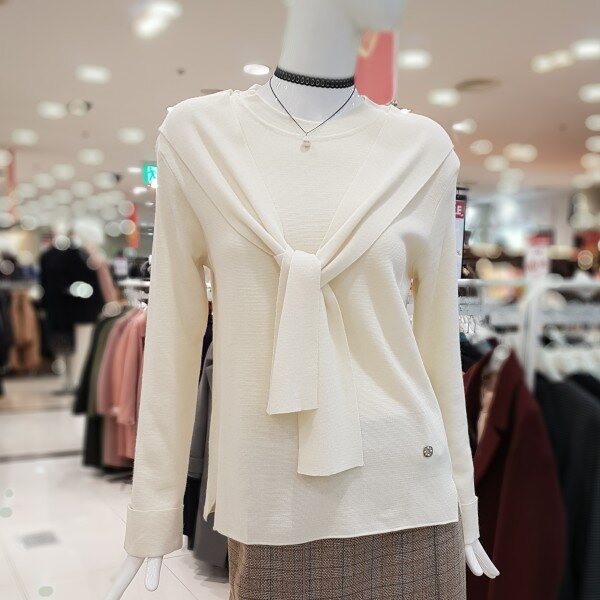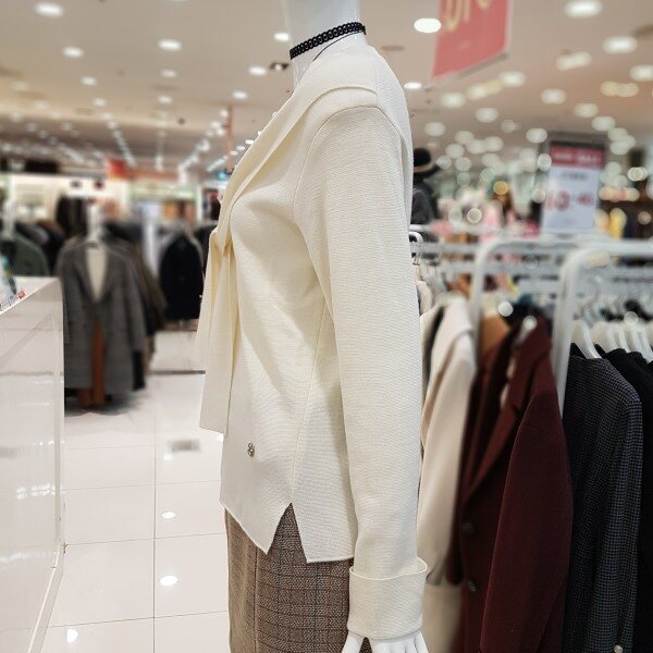 아이보리컬러에 깔끔한아이네요얇지않은 두께감은 단품,이너로 좋구요숄더머플러디테일은 귀여워요적당한 기장과 여유있는 사이즈에다양하게 코디 좋으실듯합니다