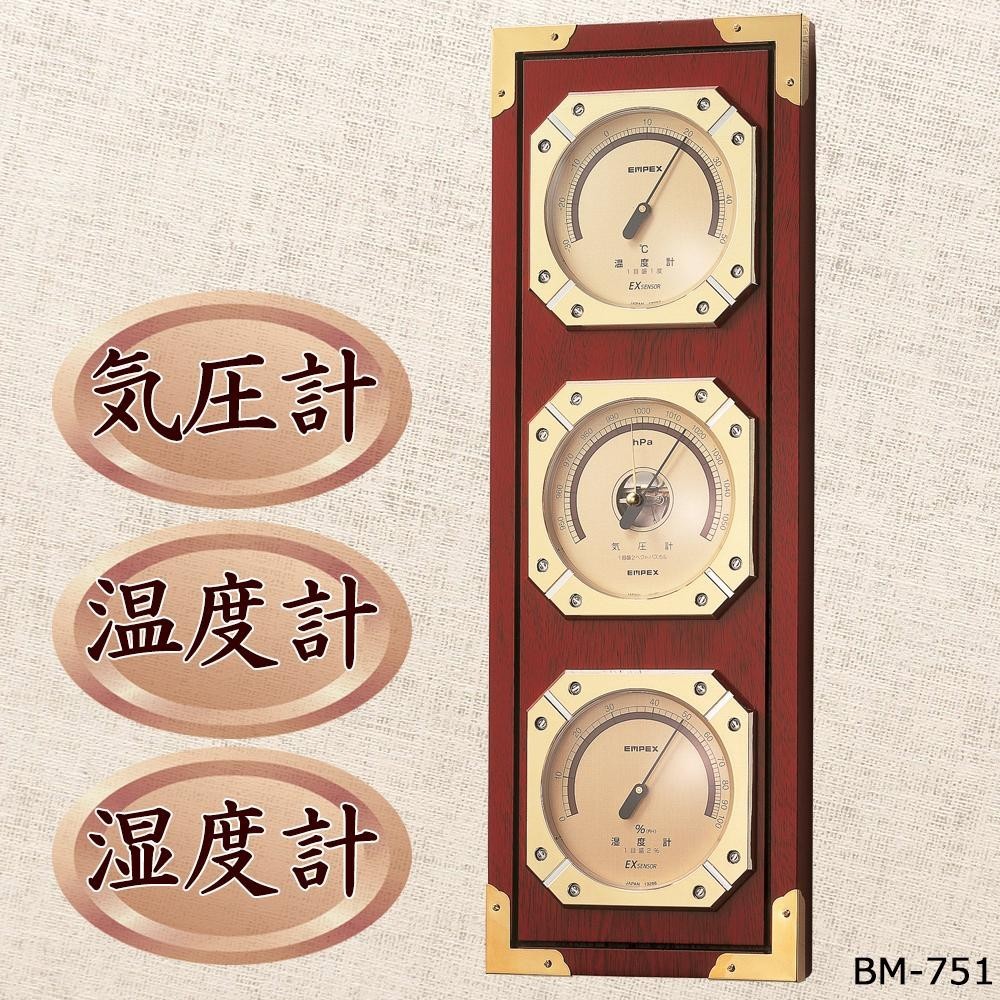気圧・温度・湿度計を1台にセットしました。美しい木目の風格が醸し出す英国調トラッドのデザインに、計器盤の落ち着いたメタリックな輝きがマッチしています。実用的なインテリアとして、記念品や贈り物にしても喜ばれます。 |
